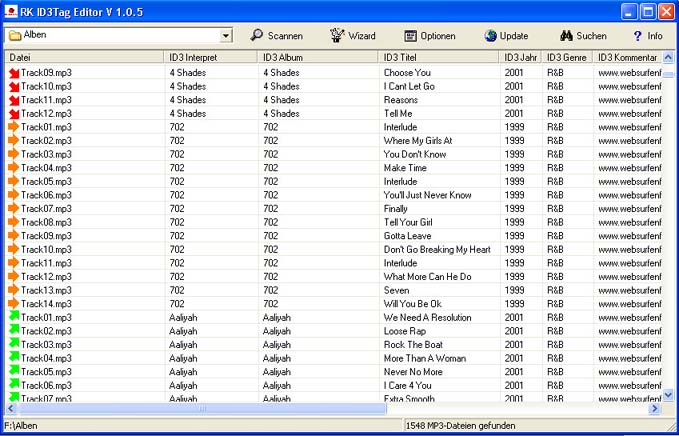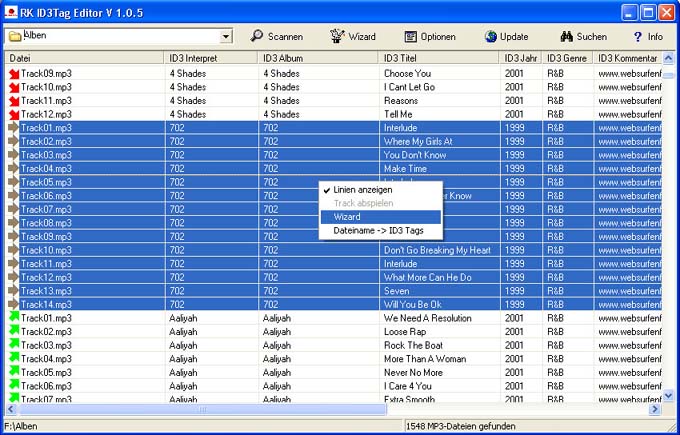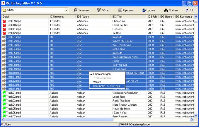 die ID3-Tags (z.B. Dateiname nach Interpret und/oder